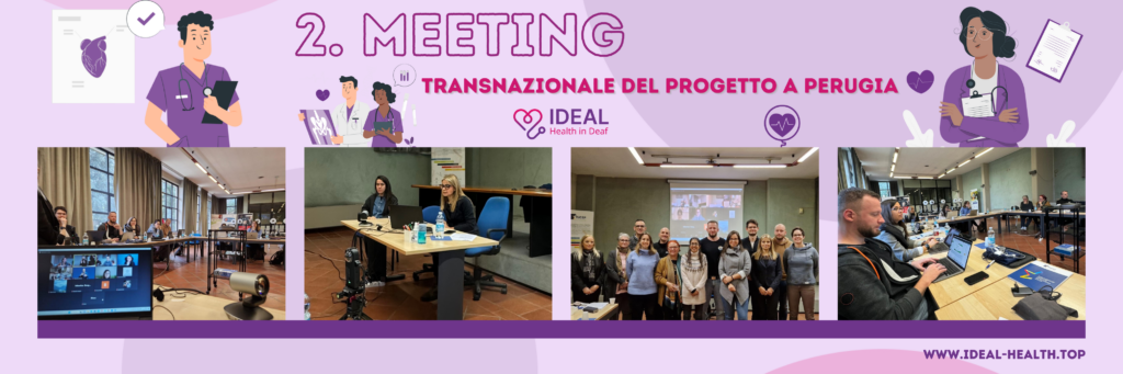 Il progetto IDEAL, acronimo di “Increasing the Health Literacy of Deaf Adults through Innovative Methodologies”, ha organizzato il suo secondo Meeting Transnazionale del Progetto (TPM2) il 10-11 gennaio 2024 a Perugia, in Italia. L’incontro è stato ospitato dall’organizzazione TUCEP – TIBER UMBRIA COMETT EDUCATION PROGRAMME.